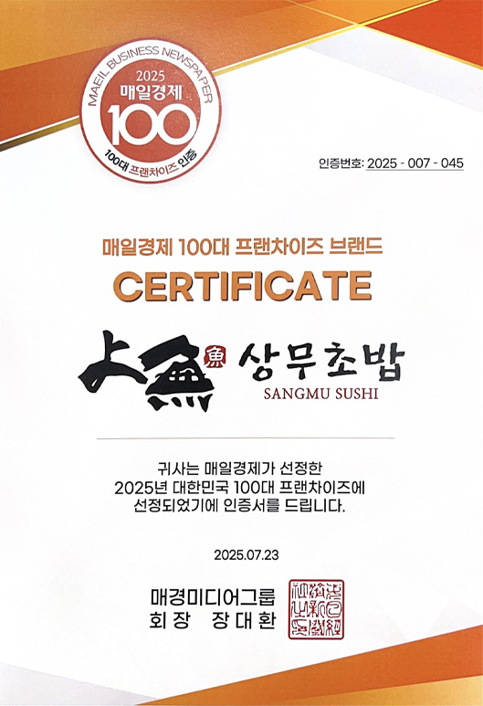 전국 최고의 초밥 브랜드가 되기 위해 목숨 걸고 노력하겠습니다.